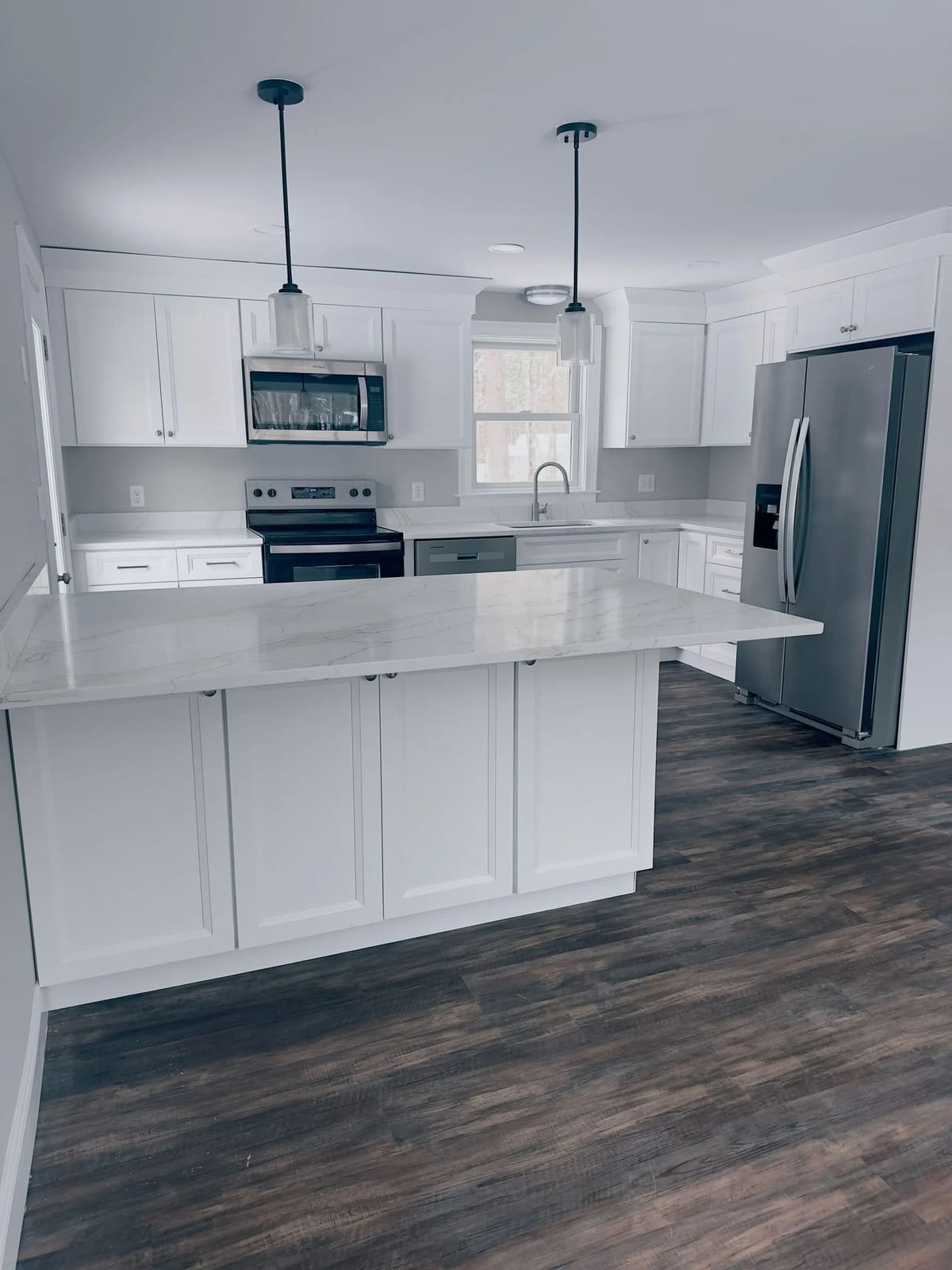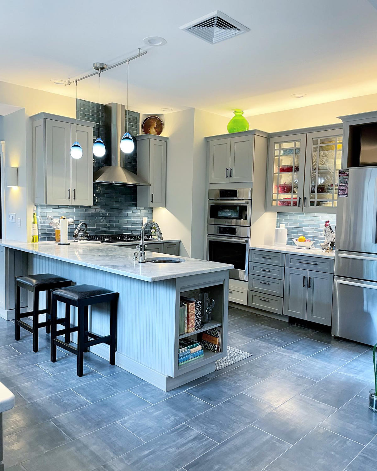 Once the space is documented, we develop a revised layout that improves workflow and function. Cabinet configurations are mapped carefully, including drawer bases, pantry storage, and specialty inserts where needed. Island size, seating placement, and clearances are reviewed to meet code and comfort. The goal is a layout that works practically while remaining proportionate to the room and aligned with your budget.